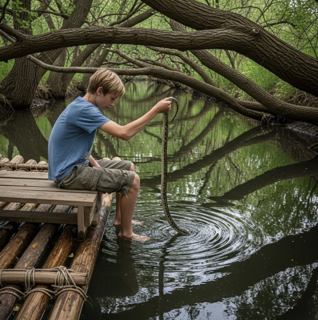It was only about four or five feet long, but it was healthy. It managed to slither down to my hands, still holding a cane pole. I ever so slowly lifted my hands and moved them in the same direction, keeping the snake’s mouth facing away from me. I lowered my hands and the cane pole until both were practically submerged in the water. The stow away snake slithered into the water and off my hands. The cane pile went in the water just as slowly.