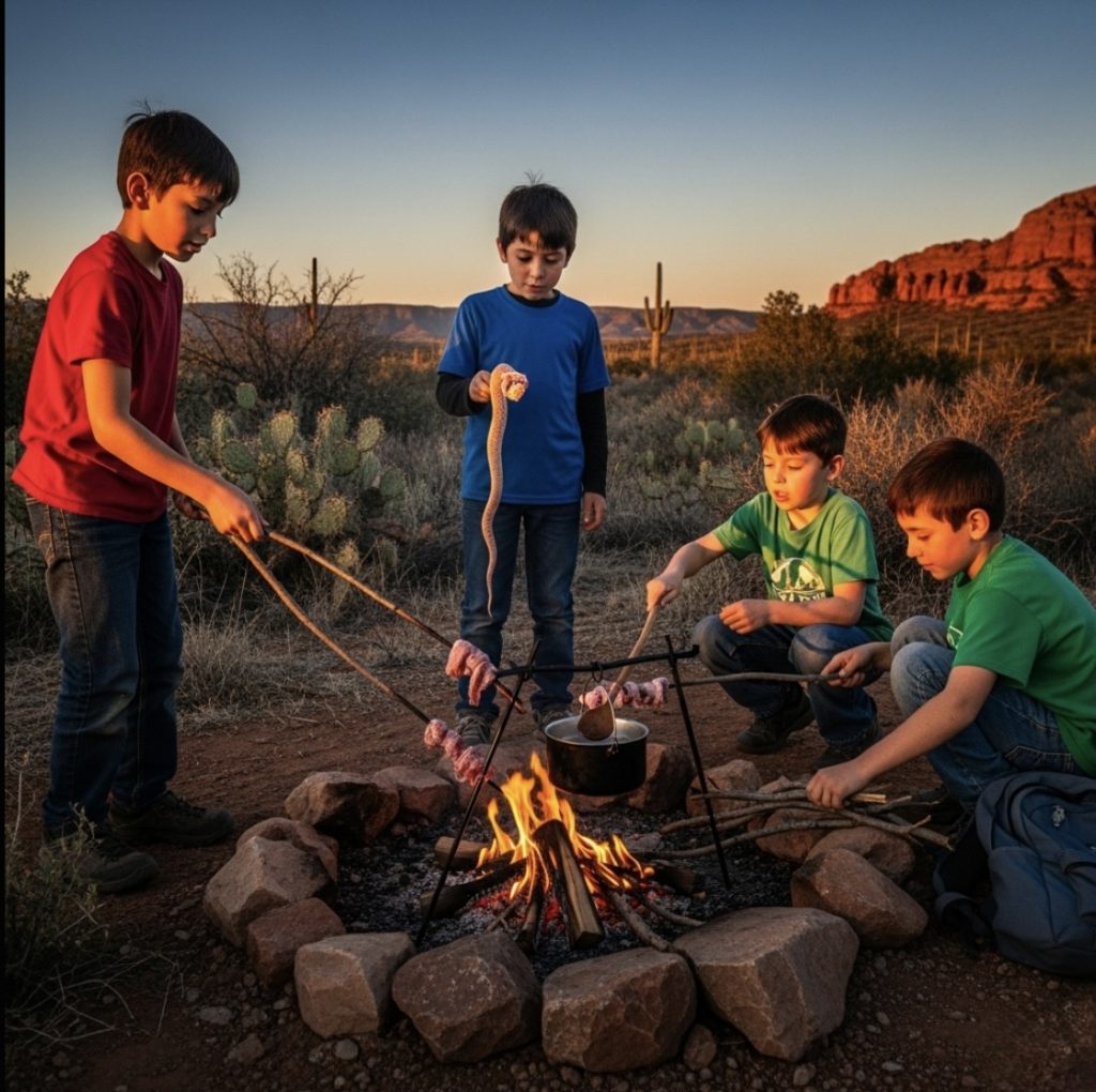 The only small game I didn’t actively pursue was snakes. Central Alabama has six different venomous snakes, and seemingly far fewer “friendly” snakes. Not that one being venomous had always stopped me from messing g with them. Back in the abandoned silver mines in New Mexico, my brother and I and our friend Aaron and Eric, had come across a few rattlesnakes. Theresa most memorable one as retreating into a narrow crack in the wall of a when we all went at it with whatever tools we had. We managed to grab it by the tail and pull it out of the crevice, and then behead it with a shovel. As I remember it, that legless demon was about seven feet long and as big around as my arm at the time. I can’t explain why, but we cut it up and cooked the meat over a small fire. We also each had a few bites of raw snake meat. It was not desirable in any way. Even the cooked meat left a lot to be desired.