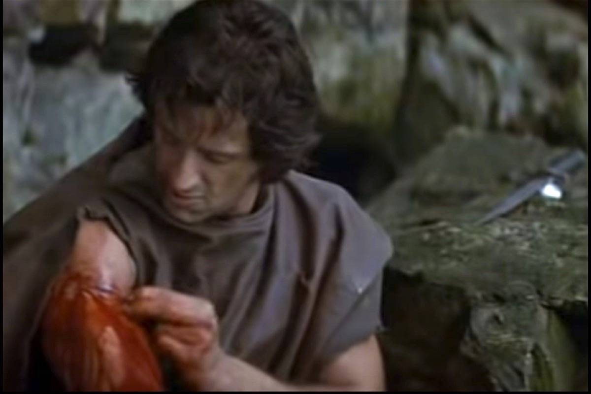 During part of the movie, [spoiler alert], Rambo jumps off a cliff and breaks several branches as a tree breaks his fall. One of the branches ripped the flesh open on his arm. My dude pulled out his knife and twisted the compass off the butt of the handle to take out a sewing needle and fishing line. I. Was. Amazed. He stitched up his arm right there with no anesthetic and no help. I decided that’s what a man would do.